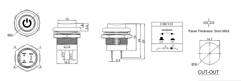 帶燈按鈕開關(guān)PB32-M-1B-G3-1A