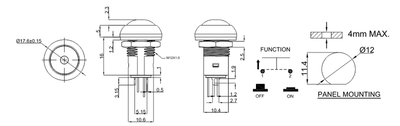防水按鍵開關M12系列,小尺寸功能齊全,復位常開、常閉,自鎖式,有防水IP65,IP67有配套的防水帽,是戶外設備使用之首選
