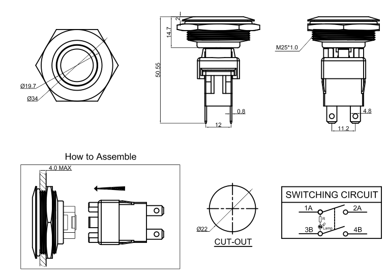 防水等級(jí):IP65/IP67安裝尺寸:Φ16mm